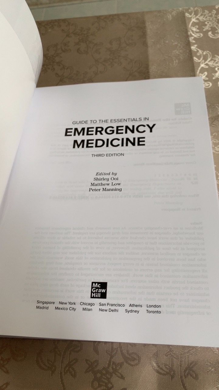 0071226311 ISBN 13. The first edition of the Guide to the Essentials in Emergency Medicine co-edited by two prominent emergency physicians Associate Professors Shirley Ooi and Peter Manning with a combined total of 64 years of Emergency Medicine practice between them was first published in Singapore in 2004. GUIDE TO ESSENTIALS IN EMERGENCY MEDICINE.